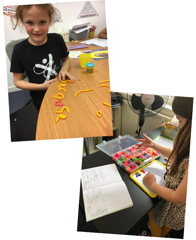 | Charlotte in Y4 using play dough to make her tricky words & Mollie in Y3 using magnetic letters. This multi - sensory approach helps them to recall the spellings. | ![]() |