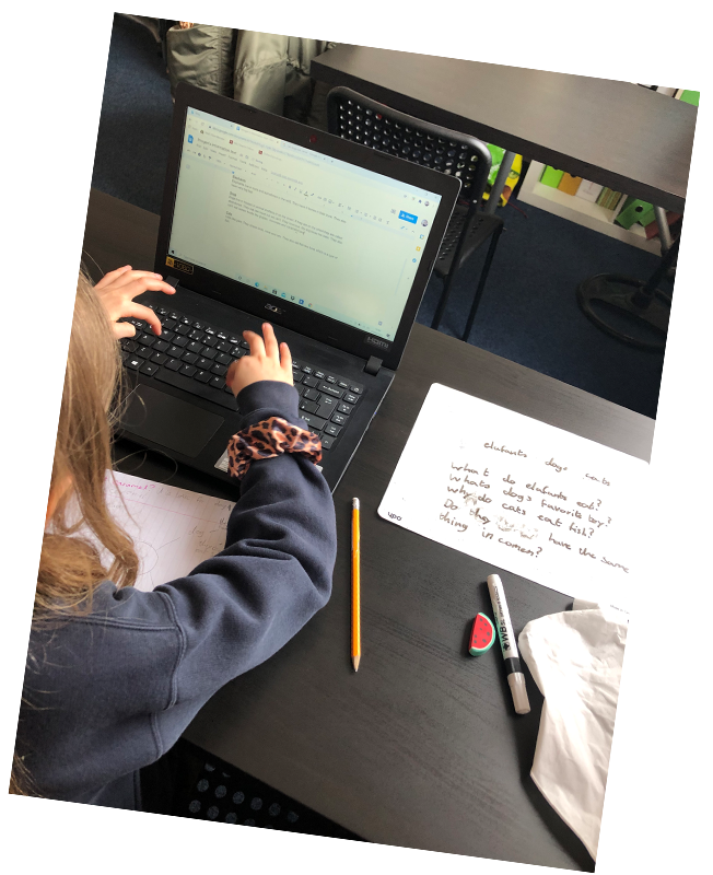 Imogen in Y4 writing about her favourite animals. |