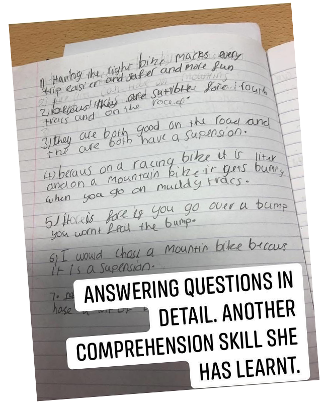 | Olivia in Y4 has been practicing answering comprehension questions in detail. |