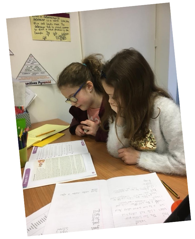 | Teamwork on reading comprehension for Ruby in Y5 and Charlotte in Y4. Both working at the same level. | ![]() |