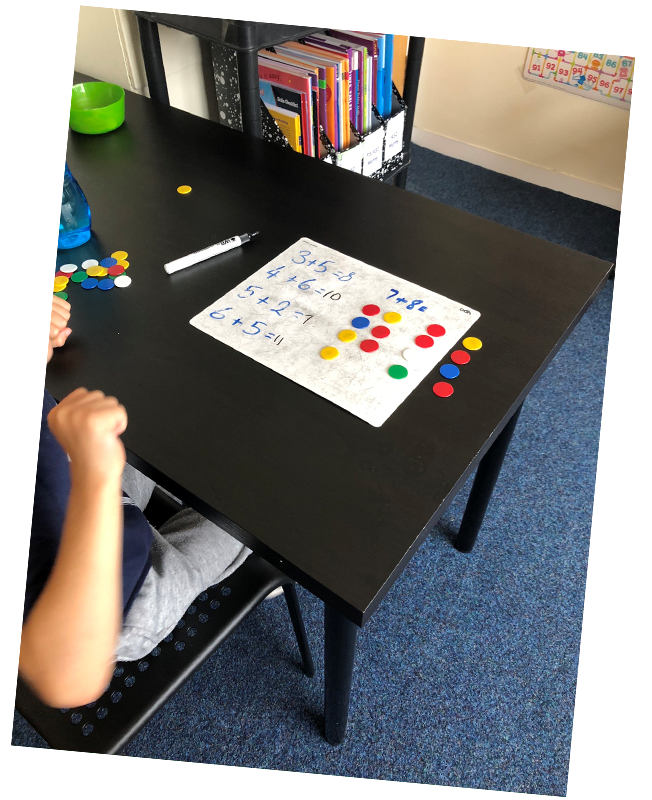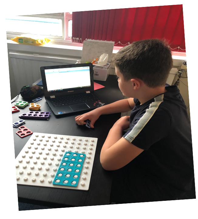 | Joe in y5 using place value, with a visual aid (numicon) to practically work out fractions. | ![]() |