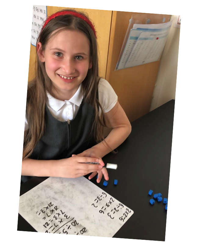 Ellie in Y3 using dienes to practically see the relationship between multiplication and division. |